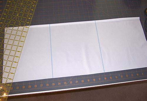 - Mark one of the 13″ x 21″ PUL panels for pocket placement, space the first line 6½” from the left and the second line 7″ from this first line.