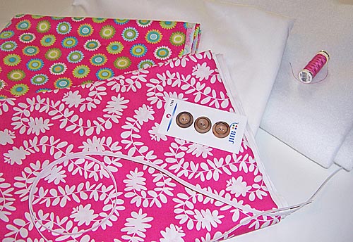 - ⅝ yard of 44″+ wide coordinating fabric for the inside facings: we originally used Pillow & Maxfield Pretty Bird from Michael Miller Fabrics in Pink Bloomies