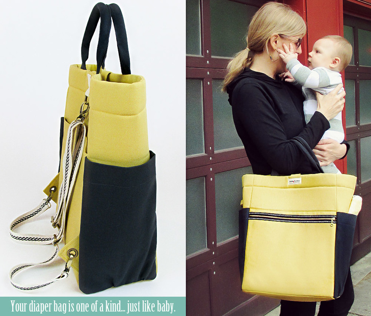 We are determined to keep the cost of our Etsy Shop patterns affordable, while maintaining the professional and thorough instructions and gorgeous sample photography we’ve become known for throughout the sewing and craft industry. This full Backpack Diaper Bag pattern set is just $5.50, which is a half the cost of most independent patterns, and nearly a quarter of the cost of many commercial patterns.