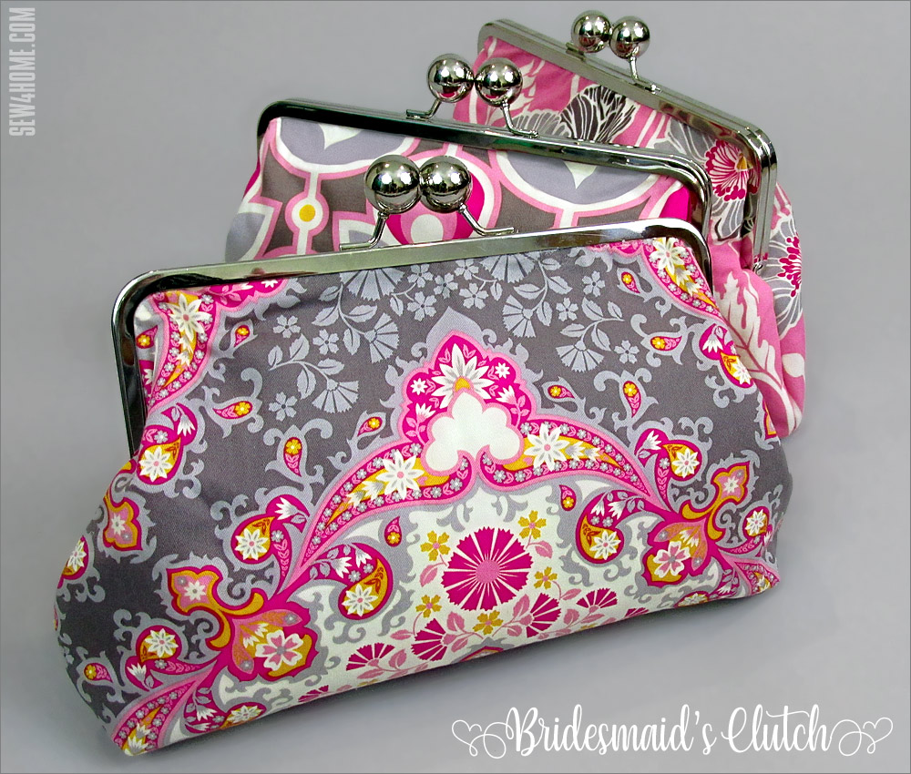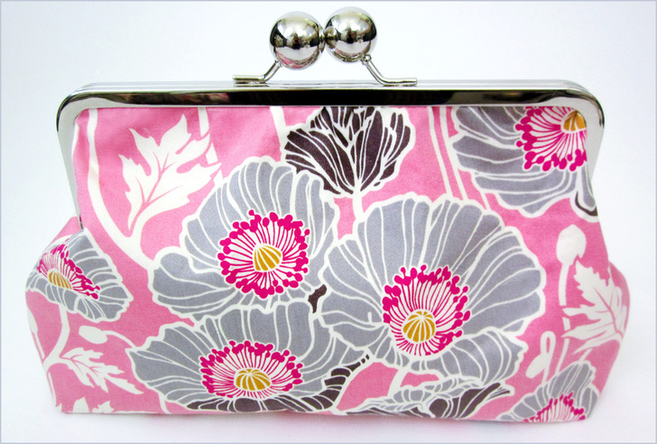 For our sample wedding party, we made three beautiful bags, originally using six blend-able fabrics from Joel Dewberry’s Notting Hill collection for FreeSpirit Fabrics. To give the clutch a bit more body, we chose a sateen weight for the exterior and a quilting weight for the lining. Although this specific fabric collection is no longer readily available, it works as a great example of fussy cutting bold prints.