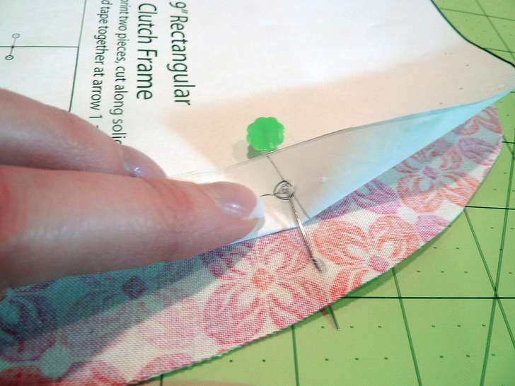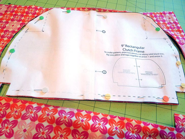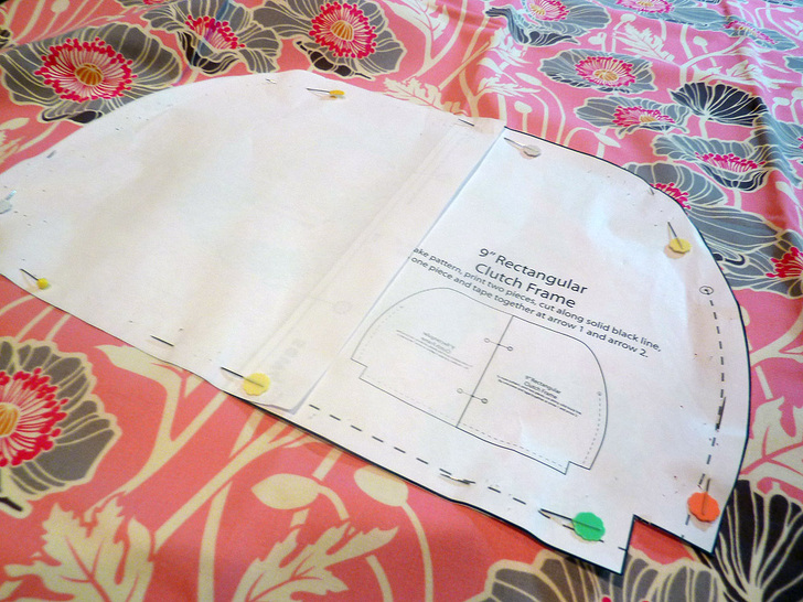 NOTE: Remember, if you are new to fussy cutting, check out our tutorial. Dramatic positioning of a motif(s) from the fabric is one of the things that make these clutches so cute. - From the fabric for the lining, use the assembled pattern to fussy cut TWO pieces.