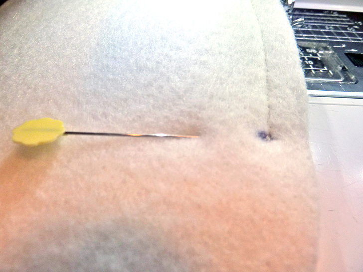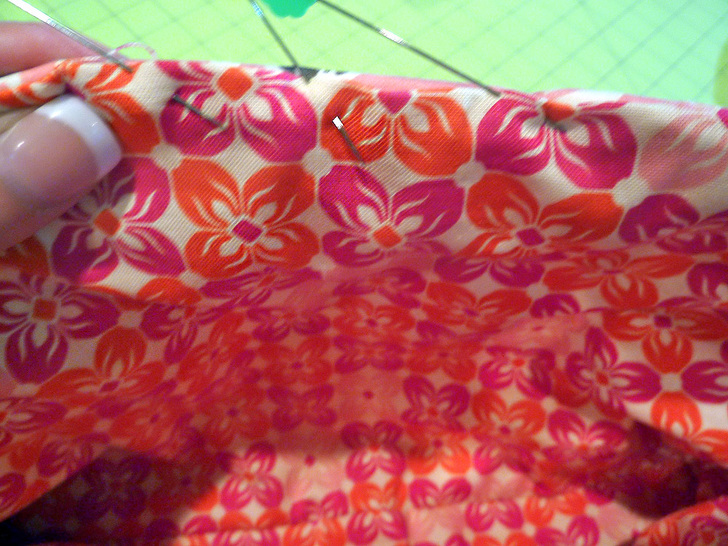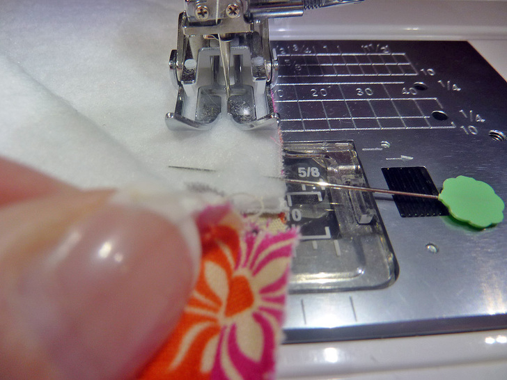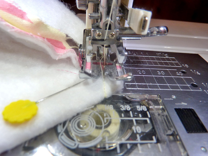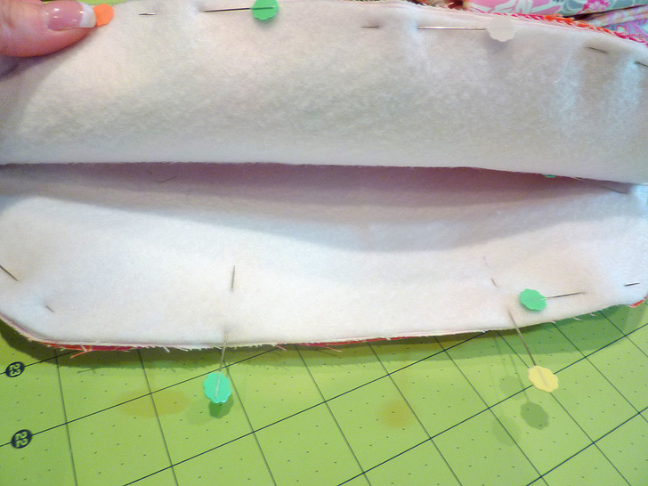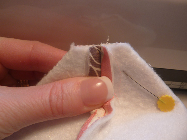 - Press in the raw edges of the opening so they are flush with the sewn seam. Pin in place.