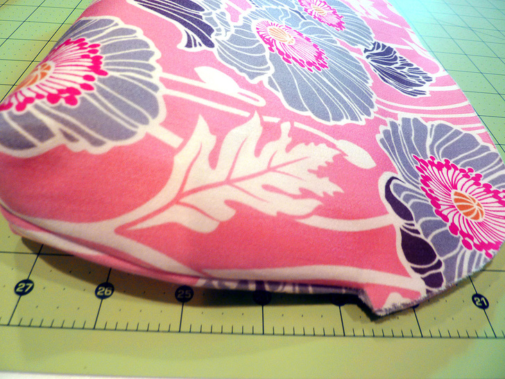 - On one curved top portion, pin from one clipped corner, over the top curve, ending at the opposite clipped corner. On the other curved top portion, pin from one clipped corner in the same manner, but leave a space at the top of this curve of about 4-6” for turning.