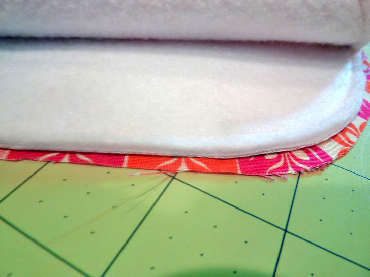 - Again following manufacturer’s instructions, fuse the fleece to the wrong side of both exterior pieces on top of the interfacing.