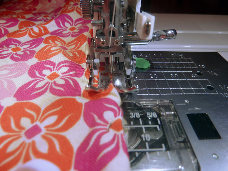 - Using a ⅜” seam allowance, stitch across the bottom. Lock your seam at the beginning and end.