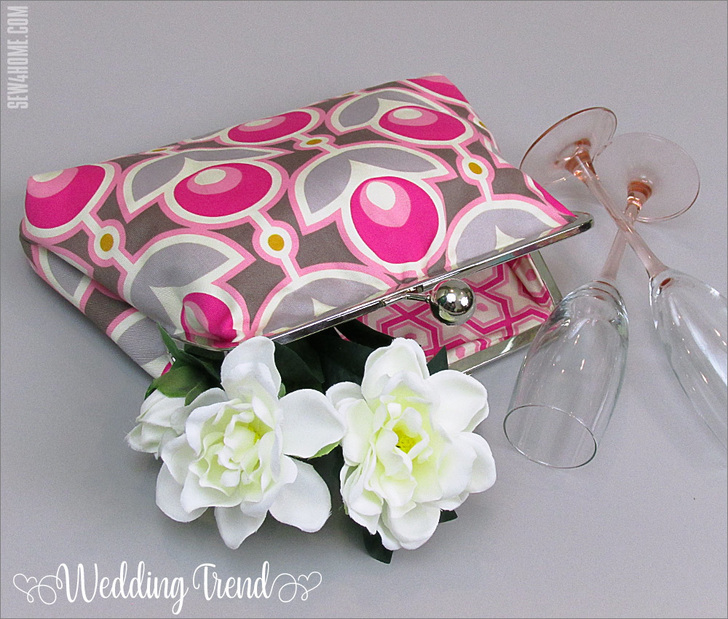 A popular recent wedding trend is to create coordinated clutches for the bridesmaids. These adorable little purses are just the right size to carry a few important items to the wedding and reception. Many brides also use them to hold a special gift for each member of the wedding party. We even found some stories about brides who’ve skipped traditional bridesmaid bouquets, choosing to put real or silk flowers on coordinated clutches, carrying these down the aisle instead.