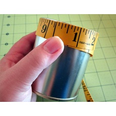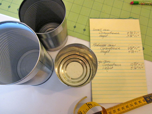 - Add 1″ to the measurement for the circumference of the can. Add 1¼” to the measurement for the height of the can.