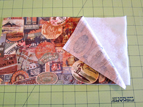 - Find the fusible fleece rectangle and one matching fabric rectangle. Following manufacturer’s instructions, fuse the fleece to the wrong side of the fabric.