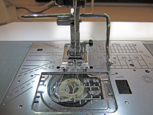 - If possible, insert a quilting bar attachment to your standard presser foot and adjust the position to fall 1″ from the needle drop.