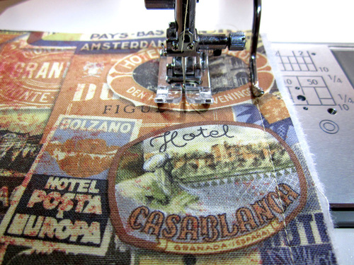 - Start your first line of stitching ½” in from the raw side edge. You are running vertical lines of stitching across the panel from short side to short side, not horizontal lines of stitching.