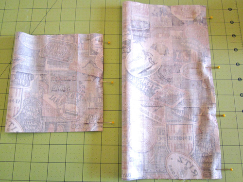 - Find the remaining two fabric panels. Fold each in half, right sides together. Pin along the side.
