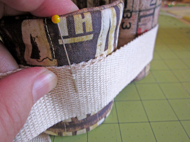 - Find the length of webbing. Wrap the webbing around the group of cans, overlapping the ends of the webbing 1″. Mark the overlap with a pin.