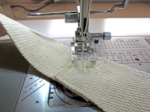 - Unwrap the webbing from the trio and trim the excess webbing at the pin mark. Overlap the raw ends again by 1″ and stitch together with an 1″ X Box. If you are brand new to this X Box technique, check out our full step-by-step tutorial.
