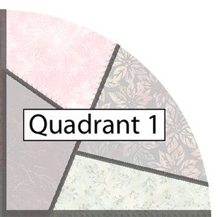 NOTES: As mentioned above, the four quadrants are identical; each is just rotated a quarter turn to the left when assembling. Below, we’ve outlined the steps to create Quadrant 1. These steps will be repeated with different fabric to create Quadrants 2, 3 and 4.
