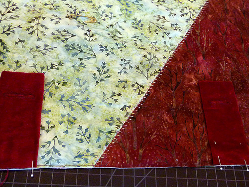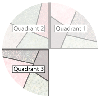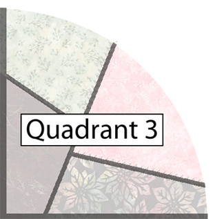 - Place Quadrant 3 right sides together over just the Quadrant 2 side of the Quadrant 1/Quadrant 2 seamed unit. Align the inner edges of the Quadrant 3 and Quadrant 2.