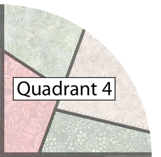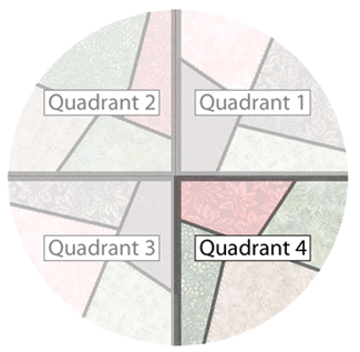 - Place Quadrant 4 right sides together over just the Quadrant 1 side of the Quadrant 1/Quadrant 2 seamed unit. Align the inner edges of the Quadrant 4 and Quadrant 1.