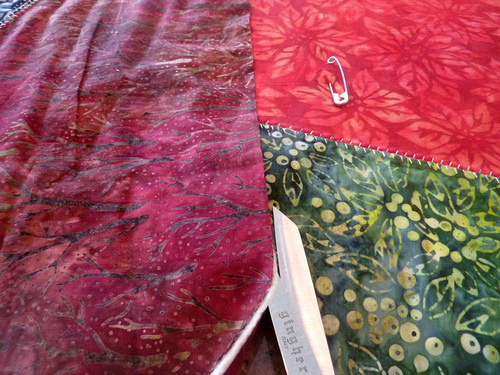 - Trim away the excess batting, leaving at least 1″ all the way around the perimeter.