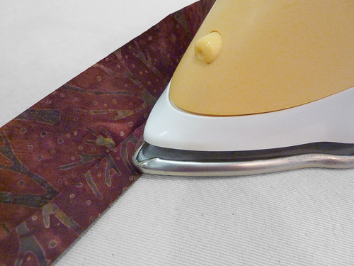 - To create binding, fold the strip in half wrong sides together and press to set a center crease. Open wrong side up so the crease line is visible. Press in each long edge to meet in the middle at the crease. Press well. Fold along the original crease line and press one more time.