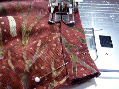 - Using a ½” seam allowance, stitch along the side and the one end, pivoting at the corner.