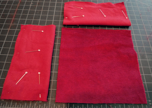 - Fold each square in half, right sides together, and pin along the side and one end.