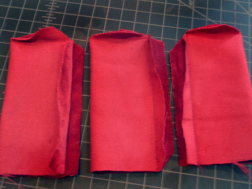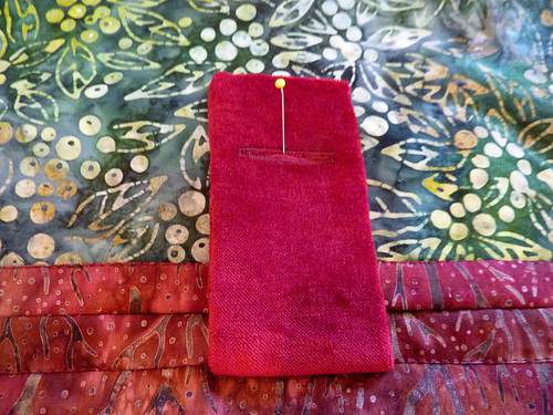 - Turn right side out through the open end, push out the corners, and press flat, using a pressing cloth to protect the surface of the velvet.