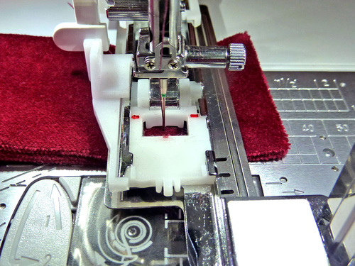 - If necessary, re-thread the machine with thread to match the velvet in the top and bobbin.