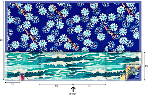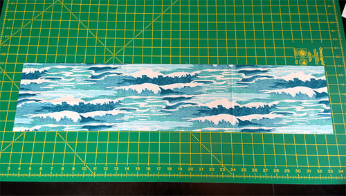 NOTE: To get the look of the cresting wave into which the diver is plunging as on our sample, position a full wave motif at the center of the panel with the “foam” of the wave’s crest 1” down from the top raw edge of the panel.