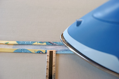 - On each fabric strip, fold back each long raw edge of the fabric ¼” and press well, creating a finished strip that is now ¾” in width.