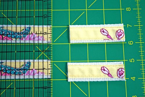 - Cut 3” from the bottom of each strap. These pieces will become the bottom tabs.
