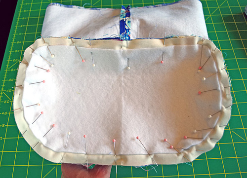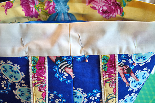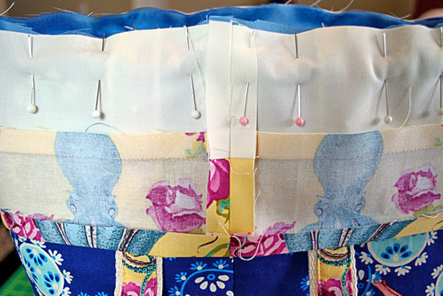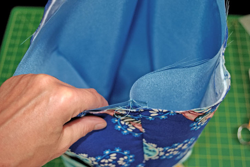 - We simply pinned in place to hold the exterior to the lining. For extra security, you could machine baste around the top.