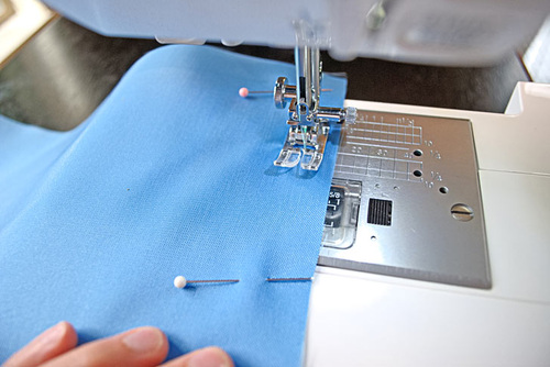 - Lengthen the stitch. If necessary, re-thread the machine to make sure you have thread to best match the exterior pocket panel in the top.