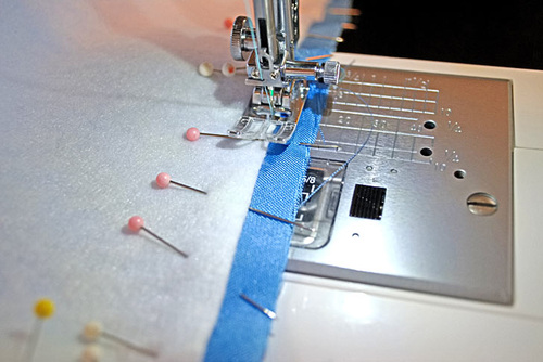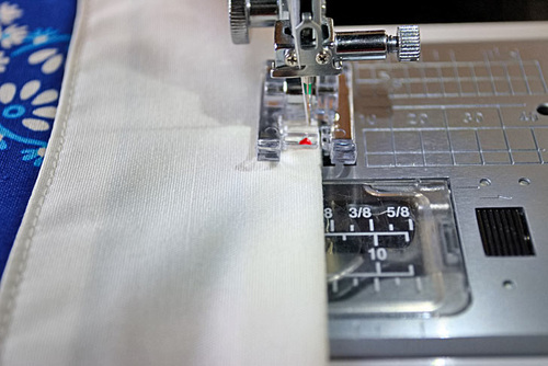 - Using a ½” seam allowance, stitch along the top edge.