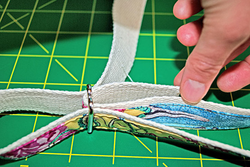 - Slip a tab through each of the rings. Bring the tab through so it is folded in half and the raw ends are flush.