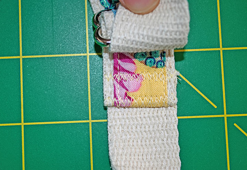 - Stitch this end in place. Make sure to move the rest of the strap out of the way; you are just stitching across the end.