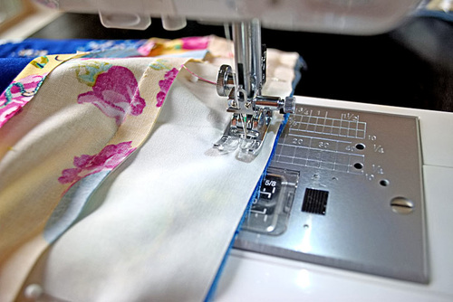 - Using a ½” seam allowance, stitch together.