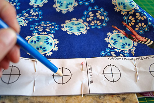 NOTE: As always, when working on the right side of the fabric, make sure your marking tool is one that will easily wipe away or will vanish with exposure to the air or the heat of an iron.