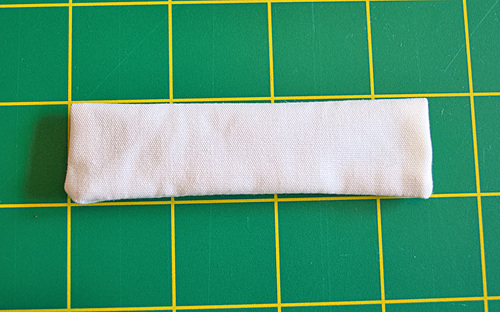 - Fold the strip in half, right sides together, so it is now 4” x 1¼”.
