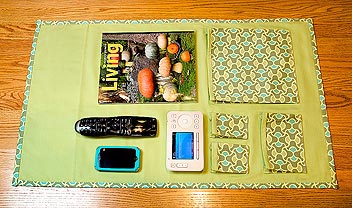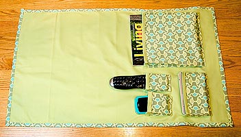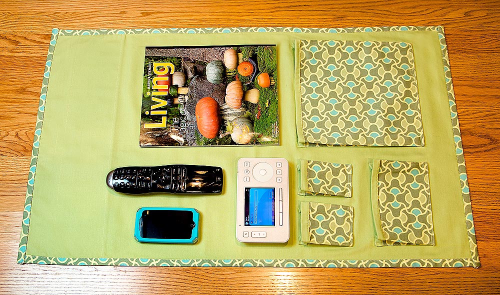 Our pocket sizes were determined based on the things we wanted to store; you’ll have different stuff, and you can change the pocket sizes to get the best fit. Remember, the pockets can go horizontally or vertically. Do whatever works best in your space. We needed the following items handy: a Logitech Harmony One remote, an iPhone 3GS, a Sonos Controller 200, and an issue of Martha Stewart Living.