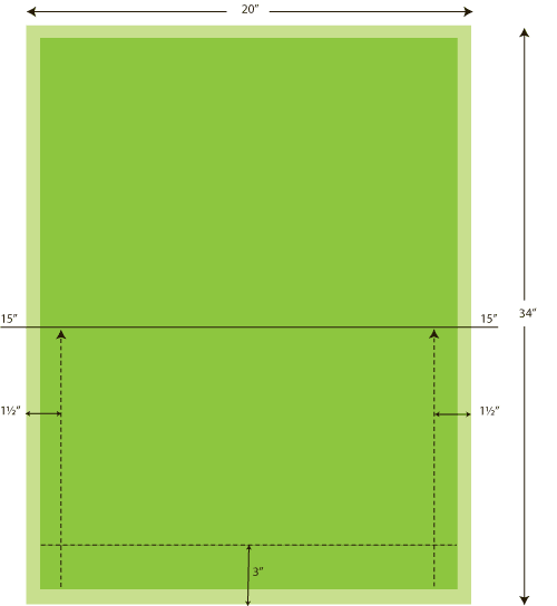 - Lay out base (solid) fabric and measure, draw and cut a rectangle 20″ wide x 34″ high.