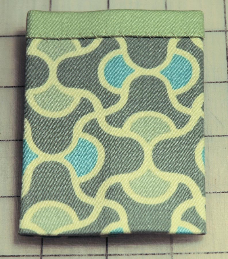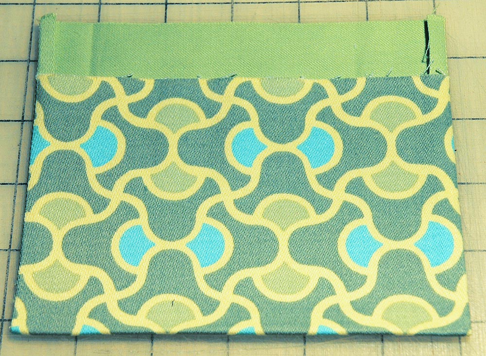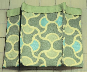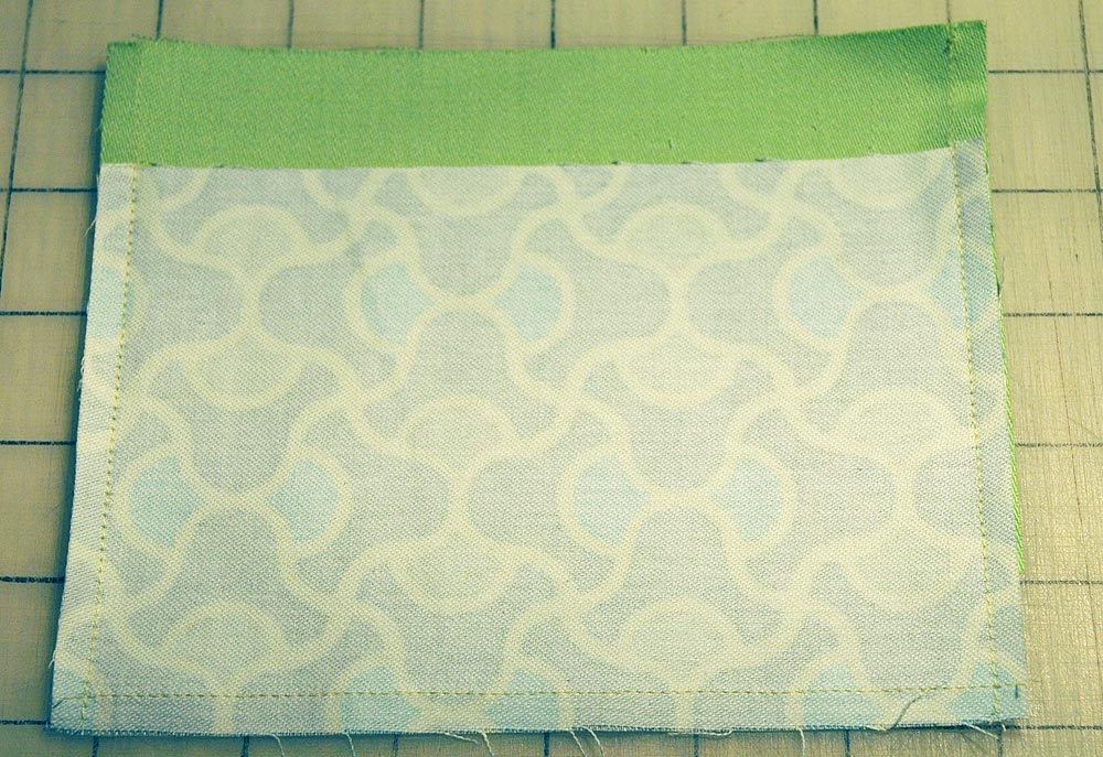 - Edgestitch each side of the pocket to the fabric base, then stitch again about 1/8″ from the first edgestitching line. Leave the bottom edge open. Remove from the machine.
