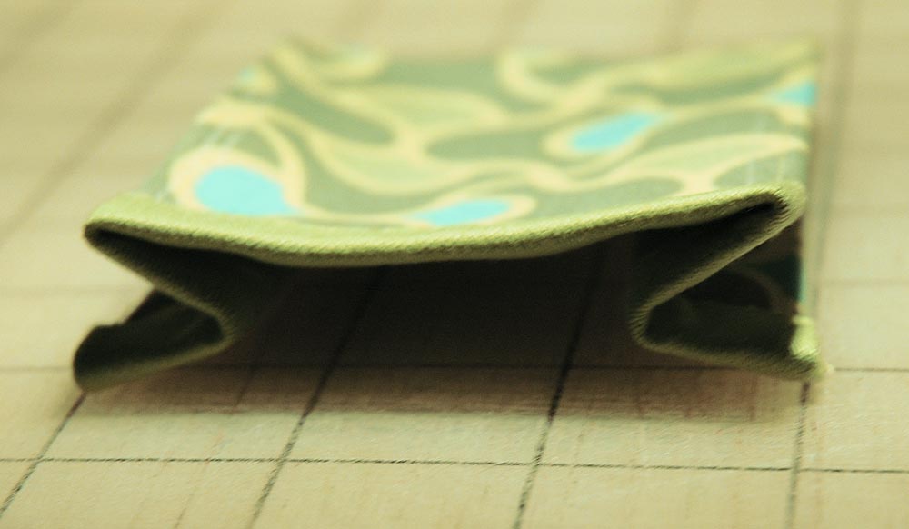 - Trim the bottom corners diagonally ( to make a cleaner point), turn all the pockets right side out and press.