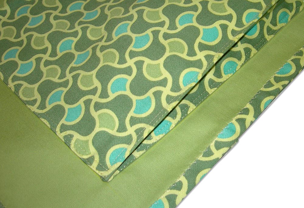 We used two coordinating Amy Butler fabrics in a decorator weight: a solid in Leaf and Garden Knot in Olive from her August Fields collection. You really need the extra heft in the fabric for both strength and stability.