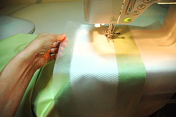 - If gripper fabric does not slide freely under your machine’s presser foot, place a sheet of wax paper over the gripper fabric and stitch on top of the wax paper. The wax paper tears away from the stitching easily when finished.