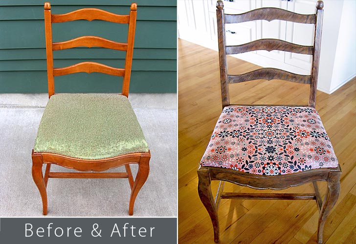 One of the fastest, easiest and most rewarding ‘furniture renewal’ projects is the simple side chair. You get a stunning makeover with very little effort. We’ve split the steps into two articles: one about refinishing and a second about the new cushion.