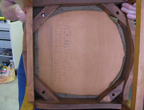 - All the side chairs we’ve ever encountered with a fabric seat are put together in the same simple manner. The seat is a piece of fabric-covered plywood screwed to the chair frame at each corner.