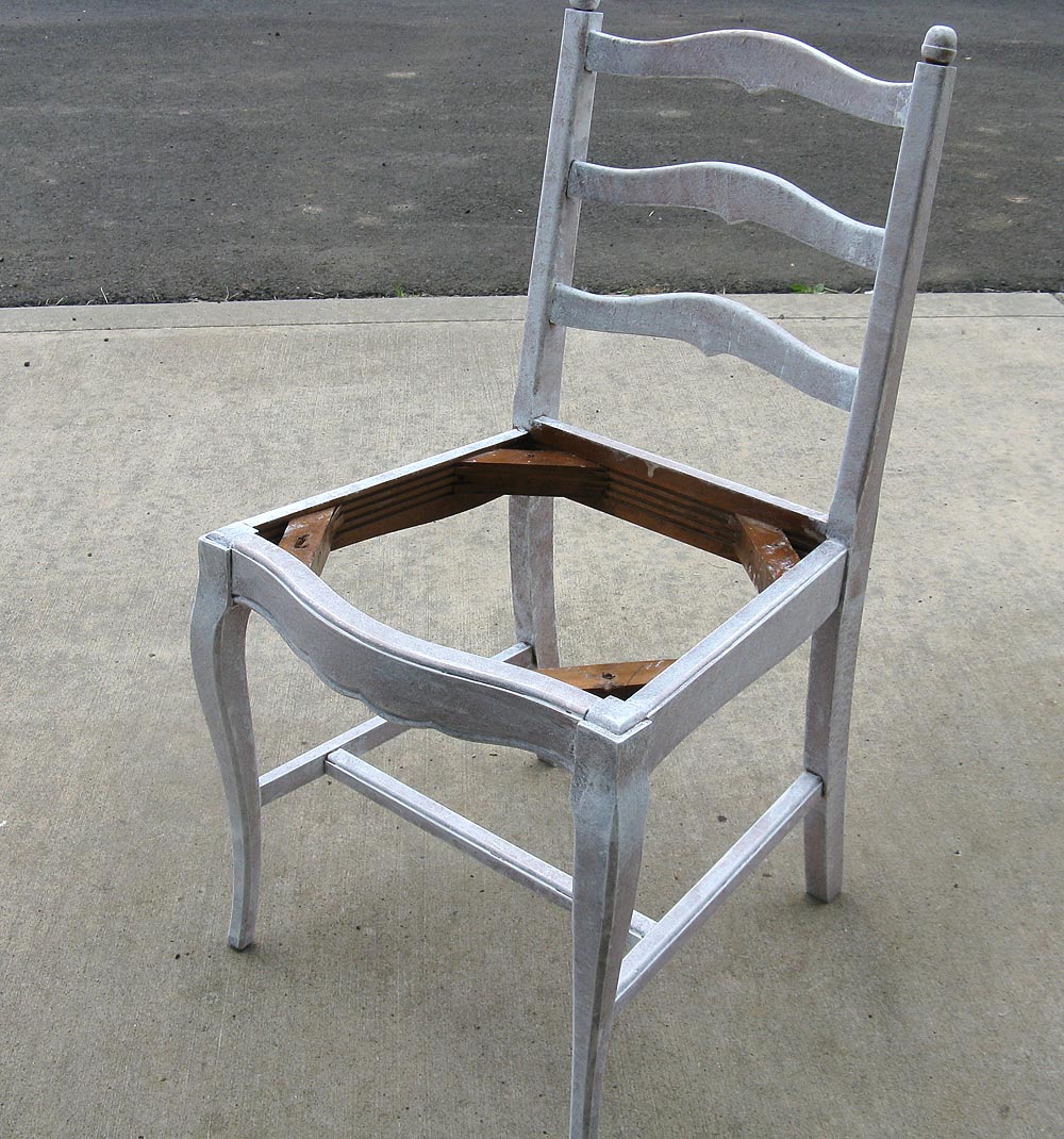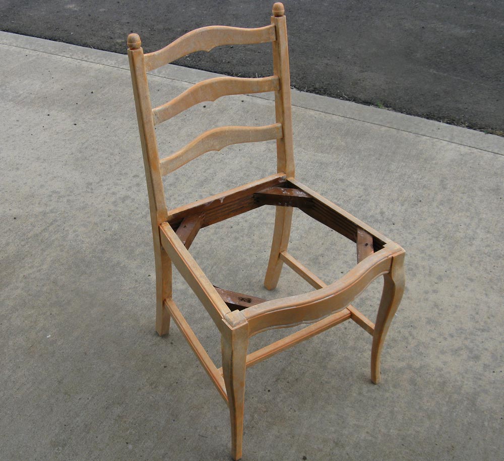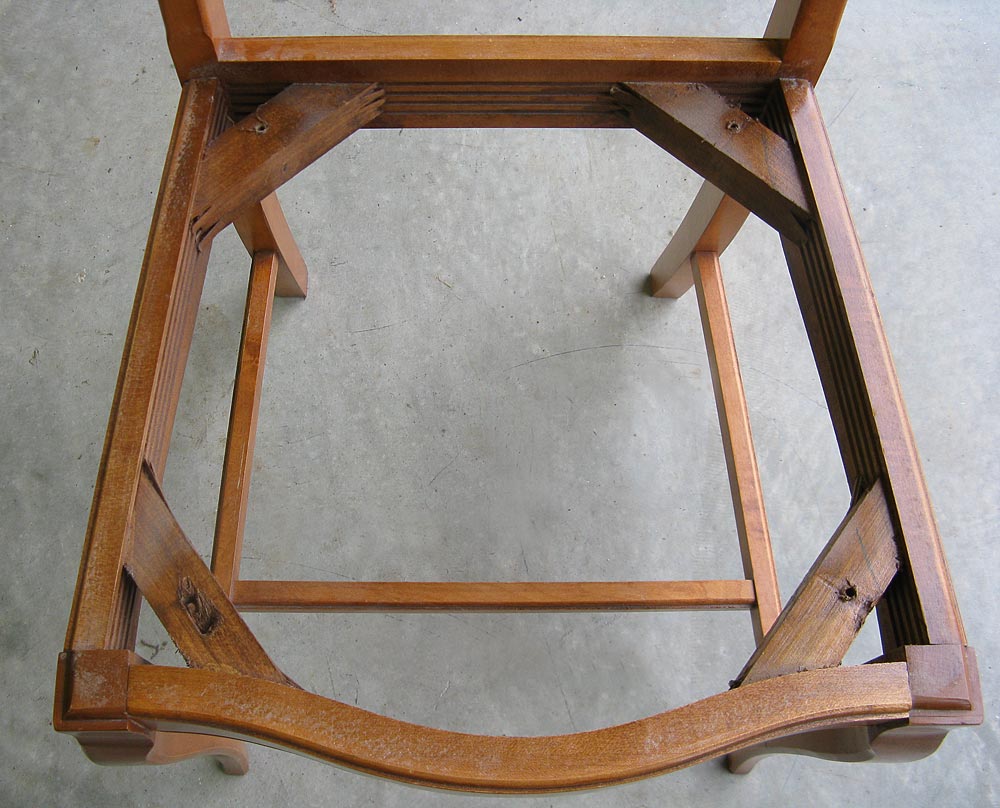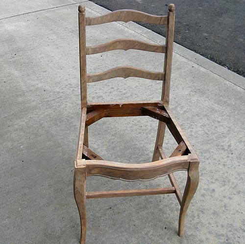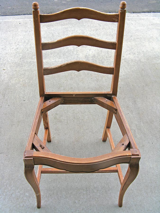 NOTE: If your chair isn’t in quite as good shape as this one. This would be the point where you should stop and take the time to glue and or nail any loose pieces in place so you are starting with a solid frame.