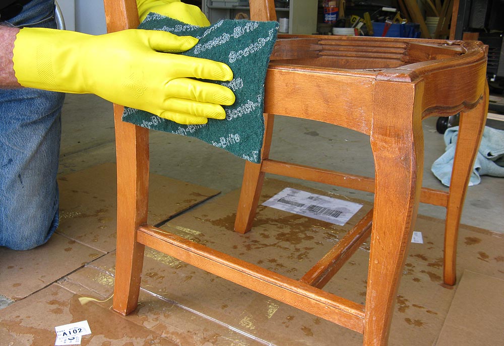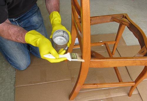 - Glove up and apply the stripper, using an inexpensive utility brush.