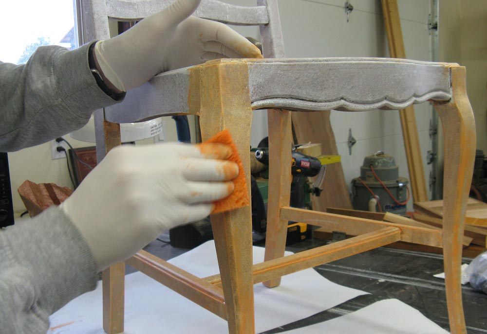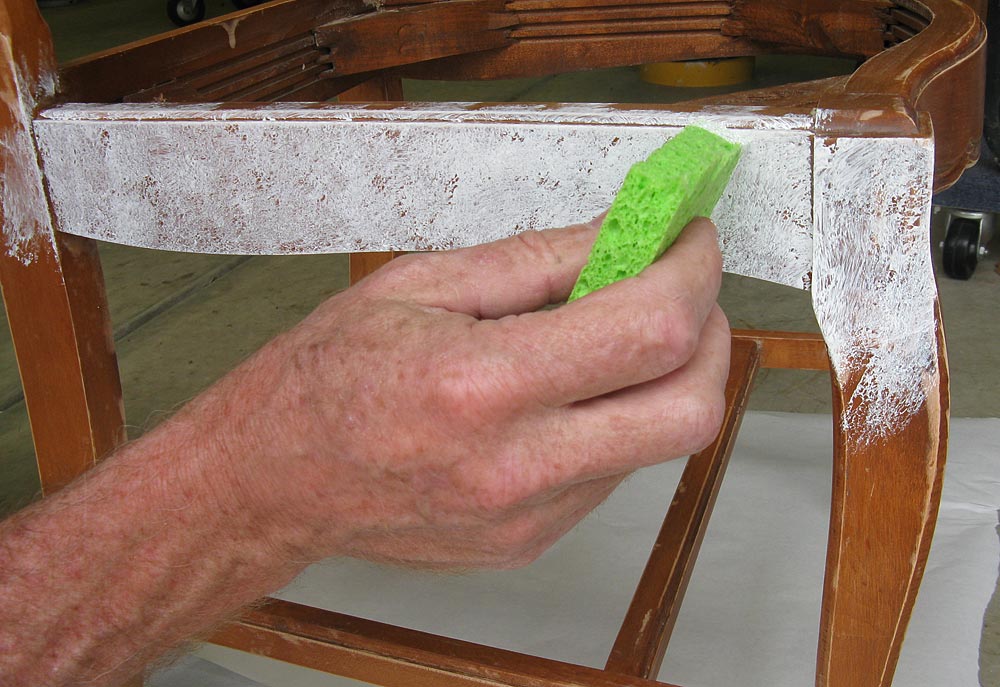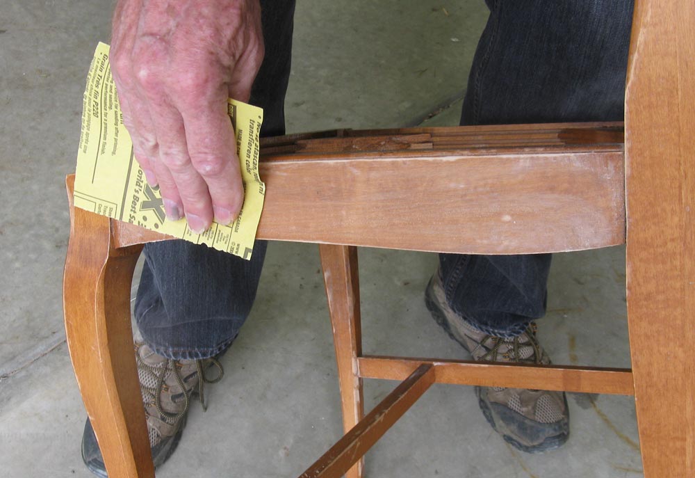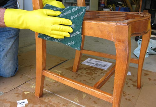 - It turns out, we could have eliminated this step and just roughed up the surface with sandpaper before painting. That’s because our chair had a very light coat of varnish on it and we weren’t interested in removing the stain down to the bare wood. In fact, we liked the idea of the stain showing through the layers of paint as an additional shade. However, we kept the stripping step in the instructions since it will be necessary if your chair has a heavier finish, such as a super dark stain or multiple layers of paint.