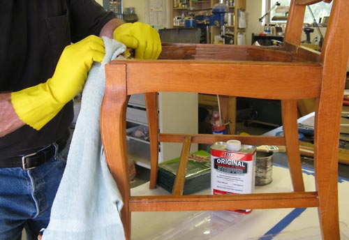 - Once we were satisfied with the removal, we dried the chair with a rag and let it stand overnight to completely dry.
