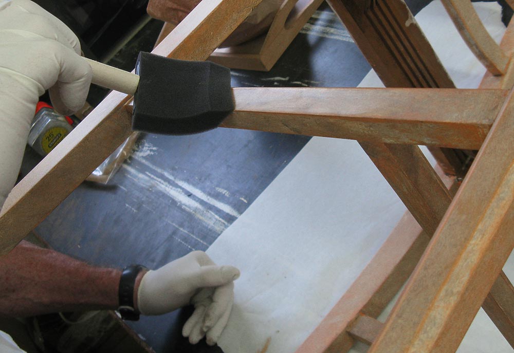 - After sanding, we removed the sanding dust with a slightly damp rag.